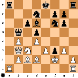 Roman decides to grab a pawn here. Believing after 1...Nxe4?? 2.Ne5 Nc3 works for him. However, a suprise awaited him after 3.Qh5! threatening Qxf7 mate. 3...g6 4.Qh3 and both the c3 knight and b7 Bishop are under attack. Clearly, if 4...Bxg2 5.Qxg2 the rook will hang instead.