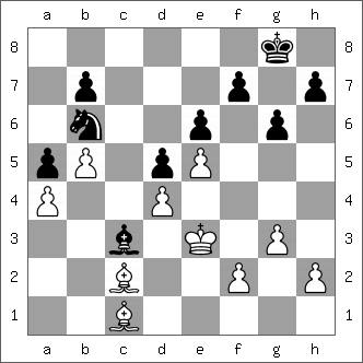 1.e4 Nf6 2.e5 Nd5 3.d4 d6 4.Nf3 dxe5 5.Nxe5 c6 6.Be2 g6 7.c4 Nc7 8.O-O Bg7 9.f4 O-O 10.Nc3 Nd7 11.Be3 Nxe5 12.fxe5 f6 13.exf6 exf6 14.Qb3 f5 15.Rad1 Re8 16.Bf2 Be6 17.Qxb7 Rb8 18.Qxc6 Rxb2 19.Qf3 Bf7 20.Qd3 Ne6 21.Be3 Nc5 22.dxc5 Qxd3 23.Rxd3 Bxc3 24.Rxc3 Rxe2 25.Bf4 Rc8 26.Bd6 Be8 27.Rg3 Rxa2 28.Rxf5 Bc6 29.Re5 a5 30.h4 Re8 31.Rxe8+ Bxe8 32.h5 Bc6 33.h6 a4 34.Re3 Rxg2+ 35.Kf1 Rg5 36.Ke2 Rf5 37.Kd2 Rf2+ 38.Kc1 Rf1+ 39.Kb2 Rf2+ 40.Ka3 Rf3 41.Rxf3 Bxf3 42.Kxa4 Kf7 43.Kb5 Ke6 44.Bf4 g5 45.Bxg5 Kd7 46.Kb6 Kc8 47.c6 Be4 48.c7 Bb1 49.Kc6 Bc2 50.Kd6 Bb1 51.c5 Bc2 52.Bf4 Bb1 53.Ke7 Bc2 54.Kf6 Bb1 55.Kg7 Bc2 56.c6 Bb1 57.Be5 1/2-1/2