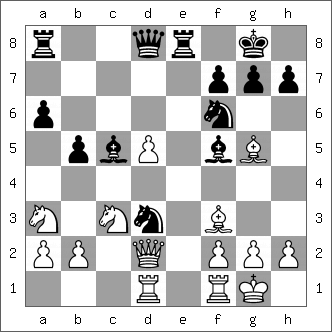 1.e4 c5 2.Nf3 e6 3.d4 cxd4 4.Nxd4 Nc6 5.Nb5 d6 6.c4 Nf6 7.N1c3 a6 8.Na3 d5 9.cxd5 exd5 10.exd5 Nb4 11.Be2 Bc5 12.O-O O-O 13.Bf3 Bf5 14.Bg5 Re8 15.Qd2 b5 16.Rad1 Nd3 17.Nab1 h6 18.Bh4 b4 19.Na4 Bd6 20.Bg3 Rc8 21.b3 g5 22.Bxd6 Qxd6 23.g3 Nd7 24.Bg2 Qf6 25.a3 a5 26.axb4 axb4 27.Qa2 Bg6 28.d6 g4 29.Qd2 Kg7 30.f3 Qxd6 31.fxg4 Qd4+ 32.Kh1 Nf6 33.Rf4 Ne4 34.Qxd3 Nf2+ 35.Rxf2 Bxd3 36.Rfd2 Qe3 37.Rxd3 Rc1 38.Nb2 Qf2 39.Nd2 Rxd1+ 40.Nxd1 Re1+ 0-1