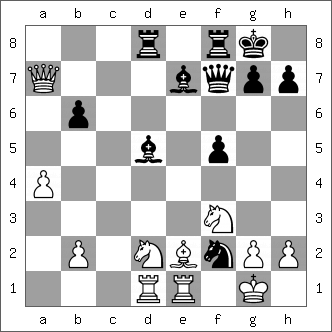1.d4 Nf6 2.c4 e6 3.Nc3 Bb4 4.Qc2 O-O 5.e4 d5 6.e5 Ne4 7.a3 Bxc3+ 8.bxc3 c5 9.f3 Qh4+ 10.g3 Nxg3 11.hxg3 Qxh1 12.Qf2 Qh5 13.Bd3 f6 14.exf6 Rxf6 15.g4 Qf7 16.Qh4 g6 17.Bg5 Nd7 18.Kf2 dxc4 19.Bxc4 cxd4 20.cxd4 b5 21.Bxb5 Bb7 22.Qg3 Rf8 23.Bxf6 Nxf6 24.Kg2 h5 25.gxh5 Nxh5 26.Qg4 Nf4+ 27.Kf2 e5 28.Ne2 Bxf3 29.Kxf3 Qb3+ 30.Kf2 Qxb5 31.Ke1 Kg7 32.Ng3 Qb2 0-1