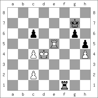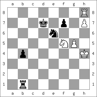 1.d4 d5 2.Bf4 Bf5 3.e3 e6 4.c4 Nf6 5.Nc3 Bb4 6.Qa4+ Nc6 7.Nf3 O-O 8.Rc1 dxc4 9.Bxc4 Nd5 10.Bxd5 exd5 11.O-O a6 12.Qb3 Be6 13.Na4 Rb8 14.Bxc7 Qxc7 15.Qxb4 Nxb4 16.Rxc7 Rfc8 17.Rxc8+ Rxc8 18.a3 Nd3 19.b4 Rc2 20.Nc5 Nxc5 21.bxc5 Bf5 22.Ra1 f6 23.h3 Rb2 24.g4 Bd3 25.Kg2 Kf7 26.g5 a5 27.Kg3 a4 28.h4 Ke6 29.Ne1 Bc4 30.Ng2 Kd7 31.Nf4 b6 32.Nh5 fxg5 33.hxg5 bxc5 34.dxc5 g6 35.Nf6+ Kc6 36.Nxh7 Kxc5 37.Nf8 Bd3 38.Ne6+ Kd6 39.Nf4 Bb1 40.Ne2 Rb3 41.Nd4 Rb2 42.Ne2 Rb3 43.Kf4 Kc5 44.Nc3 Rxc3 45.Rxb1 Rxa3 46.Ke5 Ra2 47.f4 Re2 48.Kf6 Rxe3 49.Kxg6 a3 50.f5 Kc4 51.f6 a2 52.Ra1 Kb3 53.f7 Rf3 54.Kg7 d4 55.f8=Q Rxf8 56.Kxf8 Kb2 57.Rxa2+ Kxa2 58.g6 1-0
