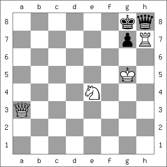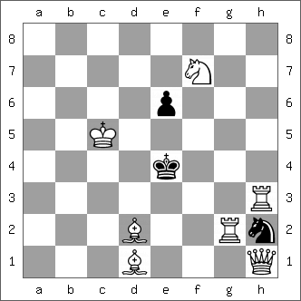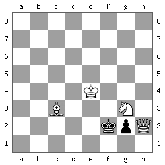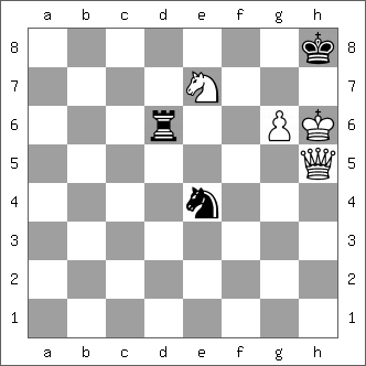 • Basic Training, Sam Loyd, American Chess Nuts, 1868, White mate in two. Idea: Find the zugzwang move.