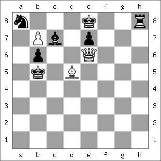 • Basic Training, W.A. Shunkman, 1919, via Chess Informer, White mate in two. Idea: Find the zugzwang move.