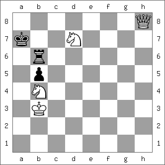 • Basic Training, Amar Dey, White mate in two. Idea: Find the zugzwang move.