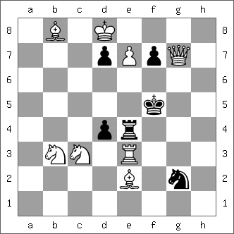 • Basic Training, R-Chess, White mate in two. Idea: Find the zugzwang move.