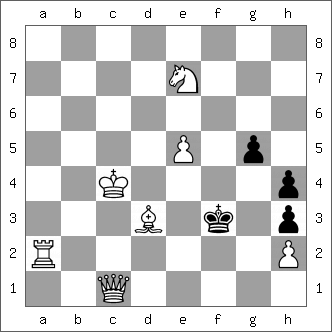 • Basic Training, Sam Loyd, Detroit Free press, 1884, via Cyrus Lakdawala, White mate in two. Idea: Find the zugzwang move.