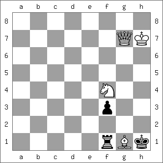 • Basic Training, Alberto Armeni, 1981, White mate in two. Idea: Find the zugzwang move.