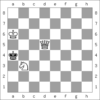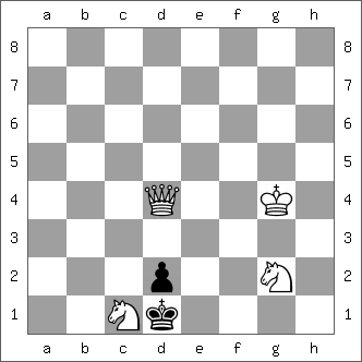 • Basic Training, Sam Loyd, Turf, Field and Farm, 1886, White mate in two. Idea: Find the zugzwang move.