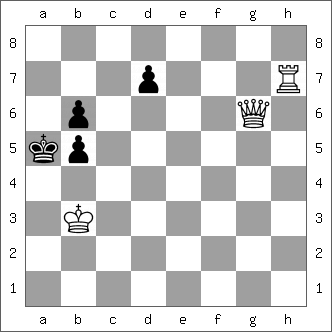 Basic Training, Leonid Kubbel, Rigasche Rundschau, 1907, via Cyrus Lakdawala, White mate in two. Black is in zugzwang. Idea; Find the amazing breakthough to checkmate.