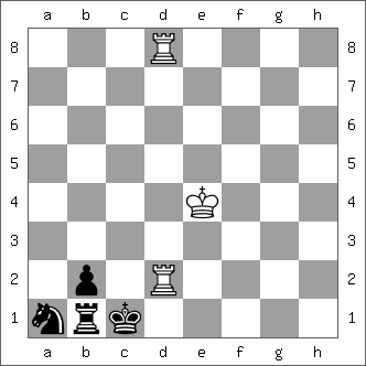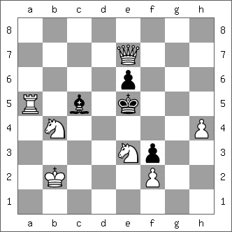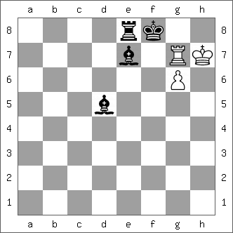 Basic Training, Antonio Tarnawiecki, via Paul Littlewood,with a reference to Blake symmetry and the poem Tyger, tyger burning bright. White mate in five. Idea: Find the zugzwang continuation.