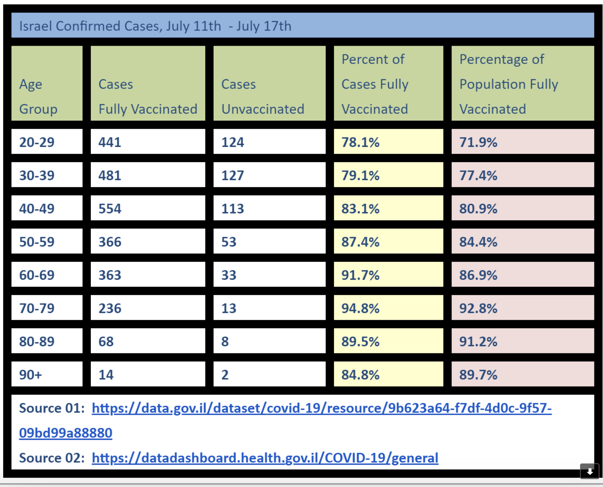 Here is what happened in the last week in Israel one of the most vaccinated populations in the world with the the delta variant and the vaxxed. The vaccine does not confer immunity or stop transmission. The vast majority of infections and transmissions come from the vaccinated, not the unvaccinated.