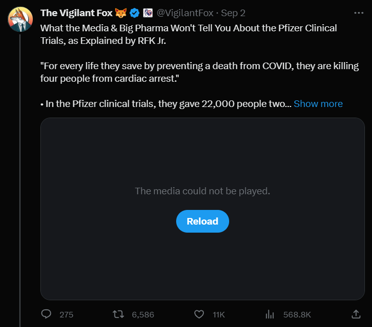 What type of videos in particular? Well, mine… I recently uploaded a video of Democratic Presidential candidate Robert F. Kennedy Jr. that garnered over 500,000 views. The post and the text stayed up, but the video was taken down. Had the video not been taken down, the post could have seen a million views or more. Users also reported X was “blocking” them from retweeting. Now, that’s something reminiscent of 2021 and early 2022 — BEFORE Elon took over the platform. So, this is concerning. So, what did Robert Kennedy Jr. say that crossed the line?