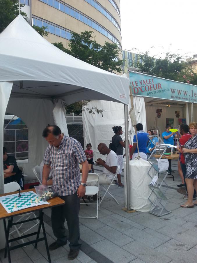 Dimanche dernier, GM Bluvshtein est venu donner une simultanée à Montréal au Complexe Desjardins. Il a vaincu 13 adversaires en un peu moins de deux heures, tout en donnant un joli spectacle au nombreux visiteurs de l’atrium du Complexe Desjardins.