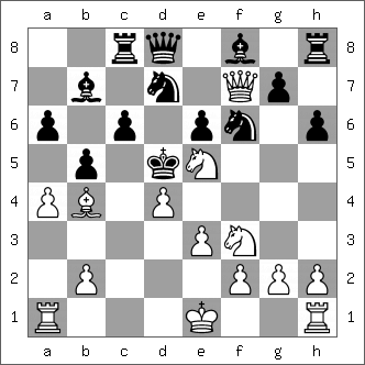 Les jeunes trouvèrent très rapidement le premier coup, 1. Fg6!, mais ratèrent la suite. Ils optèrent pour 1... fxg6 2. Dxg6+ Re7 3. Df7+? (3.Cf7! est le coup gagnant) 3... Re6 4. Fb4+ c5 5. dxc5 1-0. Cependant, les Noirs avaient 4... Rd5!!!